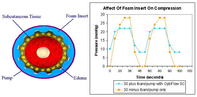 Rationale for Combination Therapy with ReidSleeve and BioCompression - Intermittent pneumatic compression can prevent static accumulation of venous and lymphatic fluid. The ReidSleeve Optiflow insert can be used inside the pneumatic compression sleeve to further augment venous and lymphatic flow and prevent obstruction due to the tourniquet-effect that can occur with sleeves made of flat, inelastic material. The Optiflow insert dampens the high pressures caused by pneumatic compression and maintains a constant base-line level of compression.