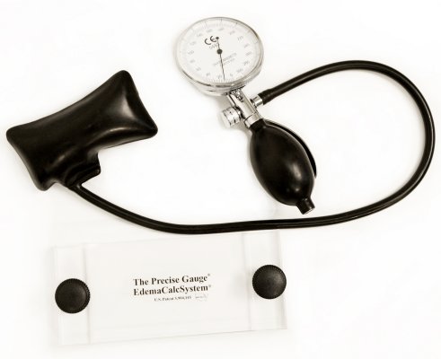 Accurate and reproducible determination of compression is essential to effective therapy. Pressures that are too high can have a tourniquet effect, blocking the outflow of lymphatic and venous circulation, forcing fluid into the tissue. Pressures that are too low will have little or no effect. To overcome these problems, we have developed the Precise Gauge (U.S. Patent 5,904,145) for use with the ReidSleeve. The optimal compression can be determined by a simple procedure, assuring the patient of the best possible results.