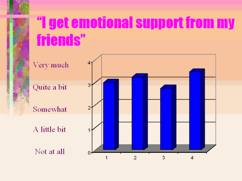 "I get emotional support from my friends." These women also reported on the amount of support they received from their friends. Again, as shown in the figure below, most women felt they received a lot of emotional support from their friends and weight had very little effect on the amount of support received from friends.