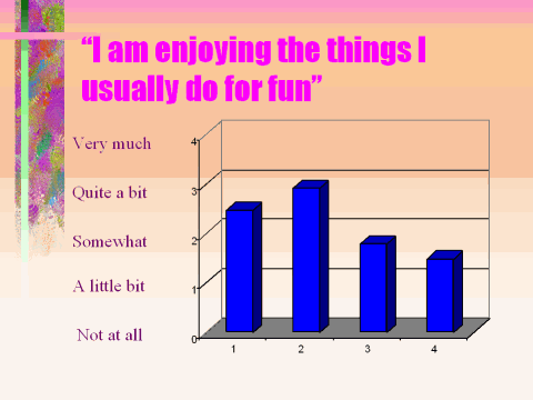 "I am enjoying the usual things I do for fun." There are two points that seems to be important from the responses to this question. First, the women in the lower weight groups still appear to be involved in the activities they enjoy since the responses generally range between somewhat and very much. As we saw in the last eNews, these women felt they had a significant amount of swelling and edema but report that, for the most part, they do not let lymphedema prevent them from doing the things they do for fun. The second point, however, is that the women in the higher weight groups are significantly less able to enjoy the things they usually do for fun. Among the women responding to this survey, as weight increased the women reported they were less able to participate in the activities they enjoyed. The women in the higher weight groups report very limited ability to participate in the activities they enjoy.