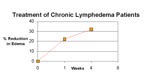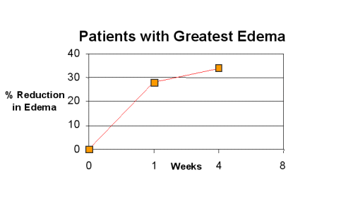 Even the patients with the most severe edema had significant improvement. See figure above. Often it is thought that patients with severe edema do not respond to therapy; however, the 6 worst patients in this group did as well as the patients with milder edema. They had a 28% reduction in overall edema in the first week and a 35% reduction in edema by 4 weeks.